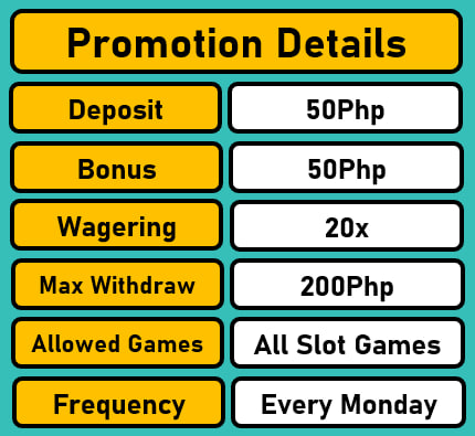 Get an EXTRA Php 50 added to your deposit included in this promotion.