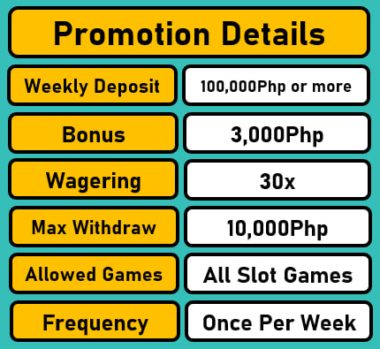✅ Weekly Rewards : The member who plays and wins the BIGGEST in a single (1) bet or free game throughout the week is the Weekly Champion Winner.