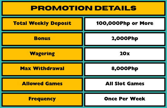 1. Deposit at least PHP 100,000 from Monday to Friday.